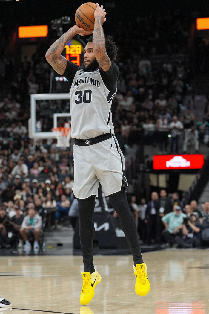 马刺外线群人人能突能投,单节利用文班亚马的牵制力交出了13中8的恐怖三分球效率,尤其尚帕尼在三分线斩获15分!